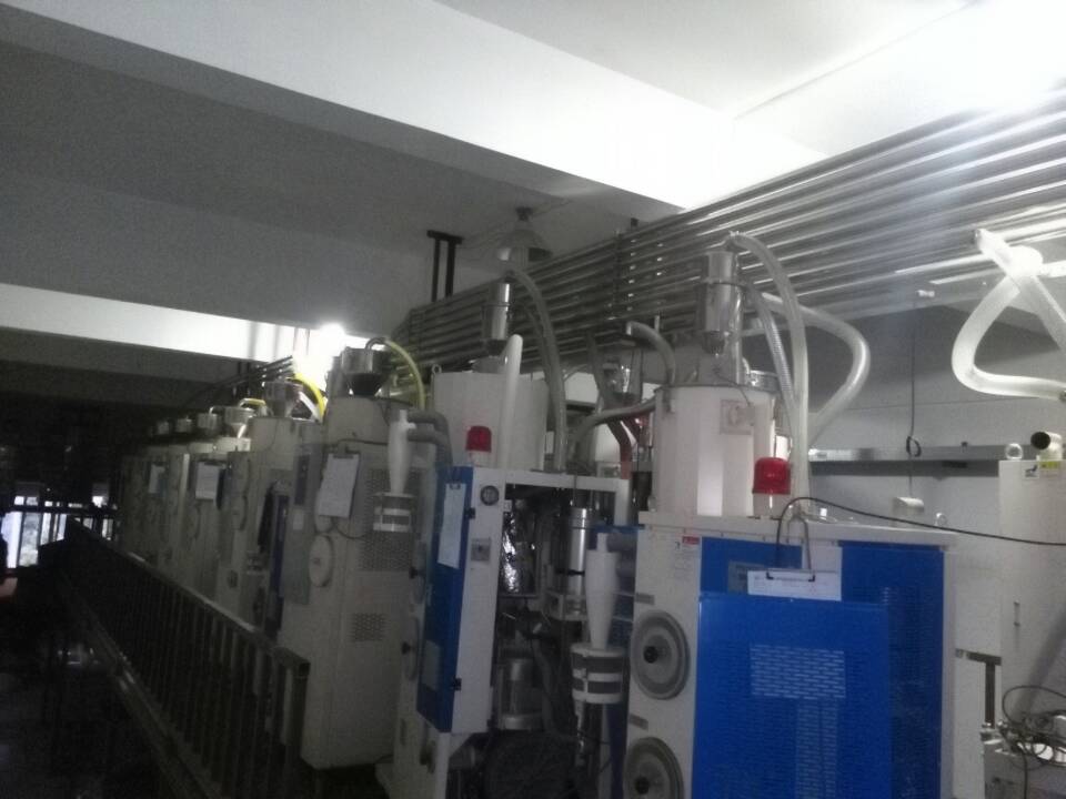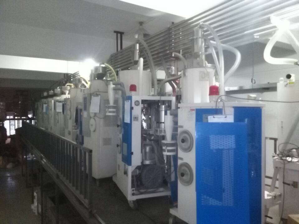 塑料中央供料系統(tǒng)采用真空傳送方式,通過集中的管路系統(tǒng)將塑料原料從儲料罐輸送到中央除濕干燥系統(tǒng),然后將干燥后的原料輸送到每臺注塑機中。烘干上料輸送系統(tǒng)采用“一臺機器一根管”的設(shè)計方式,烘干上料系統(tǒng)保證整個系統(tǒng)的空氣對原料進行輸送,防止除濕干燥后的原料回潮。同時在每個輸運行穩(wěn)定,絕無堵料的現(xiàn)象發(fā)生。
